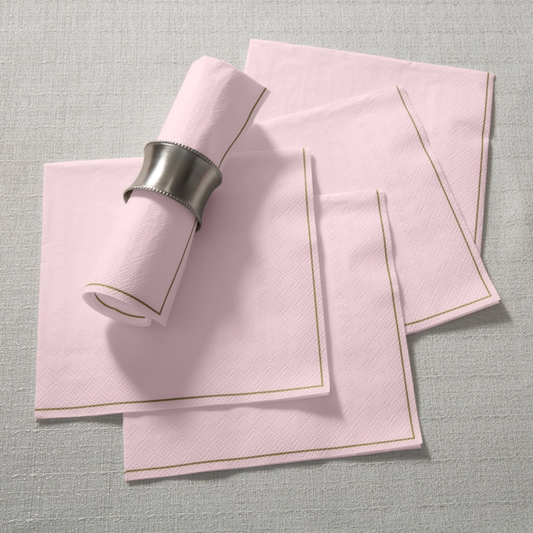 Blush with Gold Stripe Napkins | 20 Lunch Napkins - 6.5" x 6.5"
