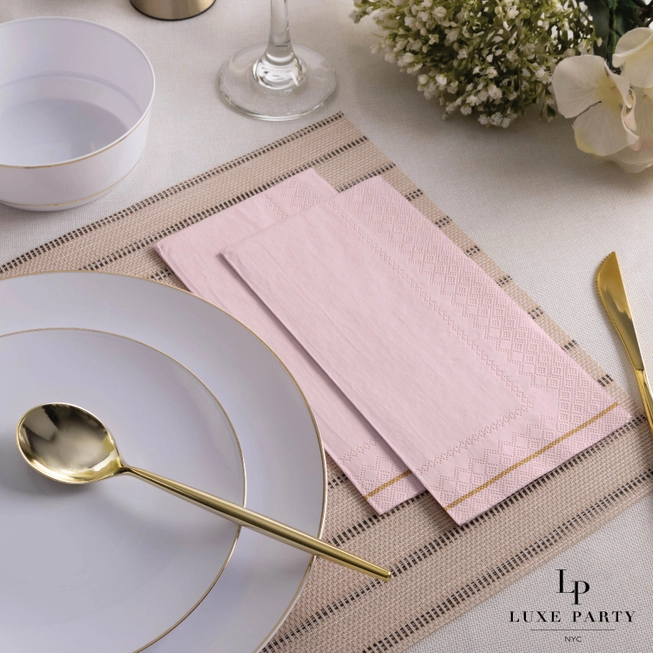 Blush with Gold Stripe Guest Paper Napkins | 16 Dinner Napkins - 4.25" x 7.75"