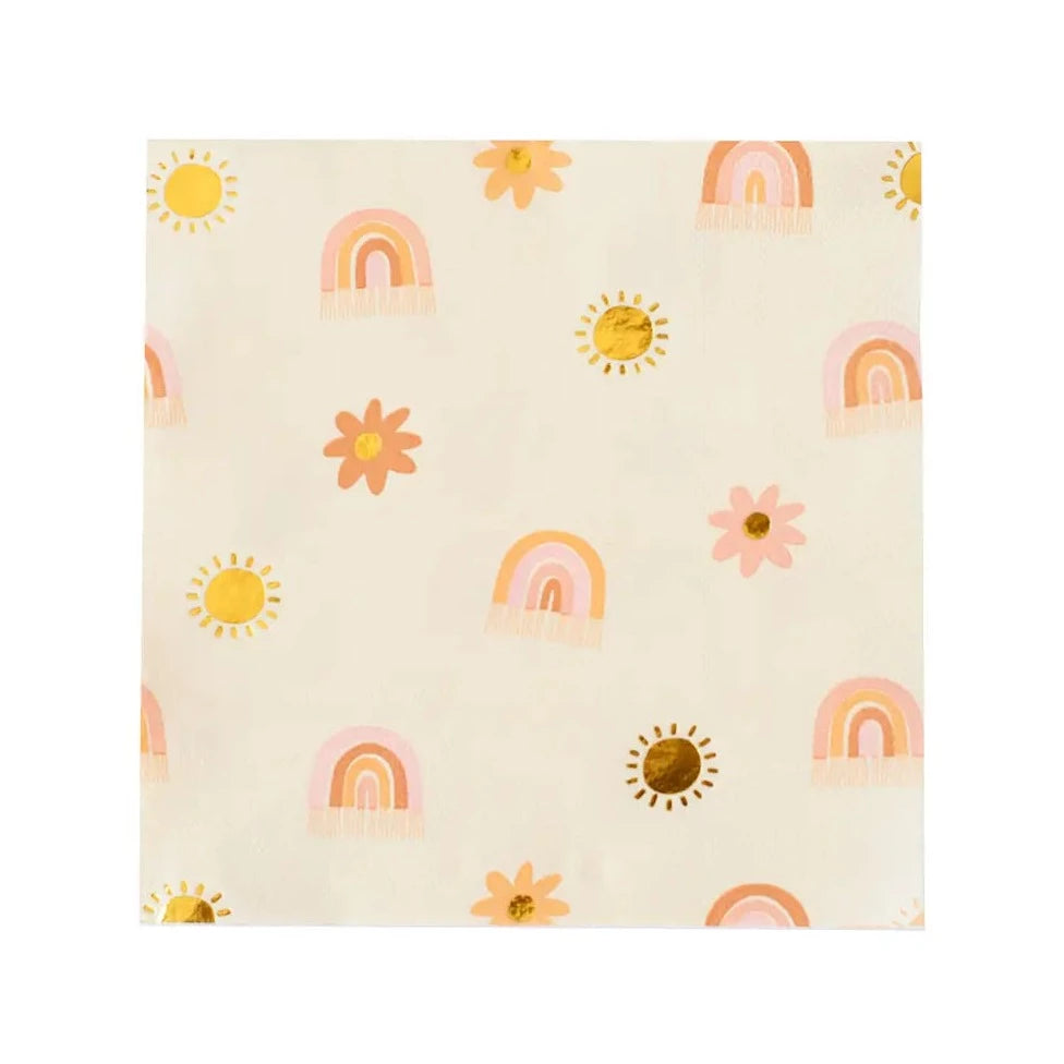 A bohemian dream! Featuring the prettiest boho colors and shiny gold foil, these napkins are totally made of peace and love!