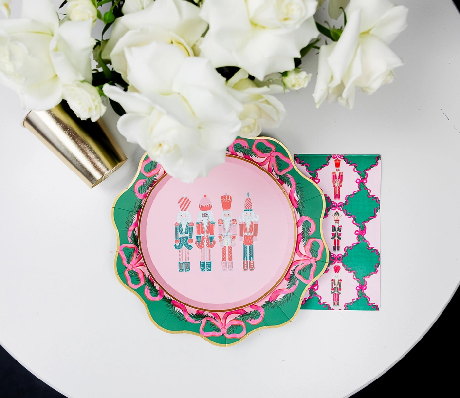 Bonjour Fête X One & Only Paper Nutcracker Small Plates! Layer them on top of our dinner plates for a perfect place setting.