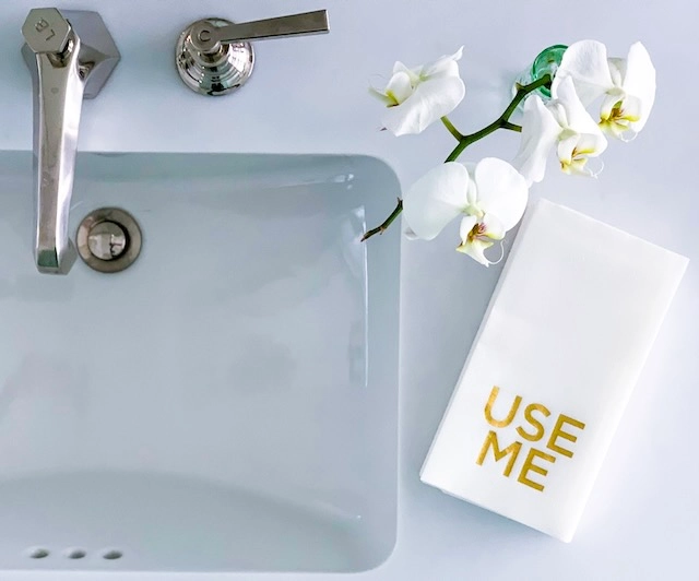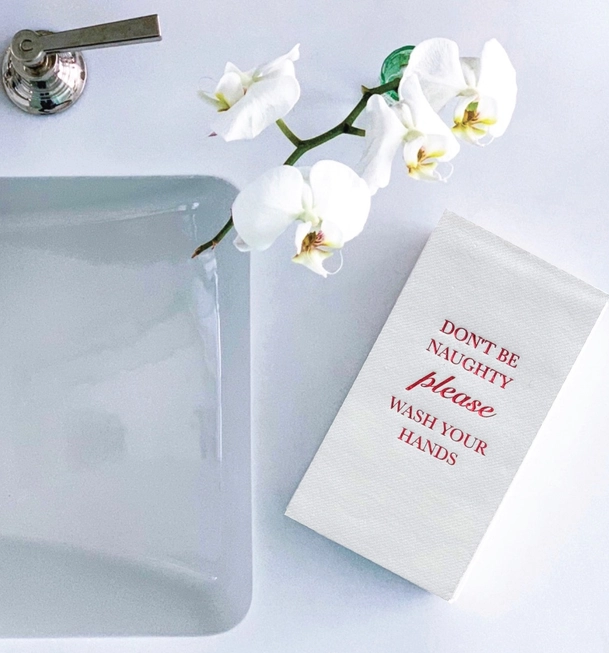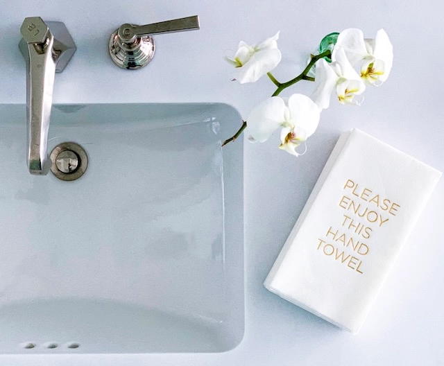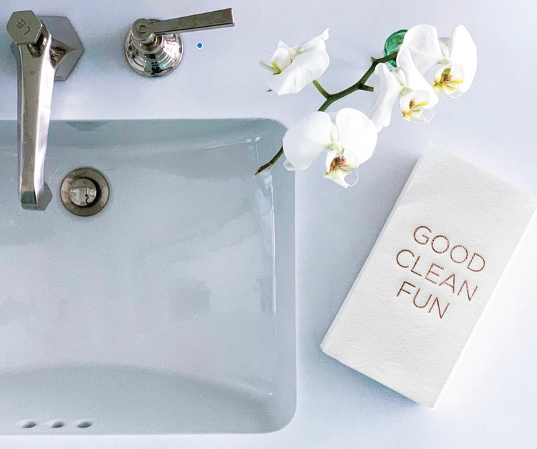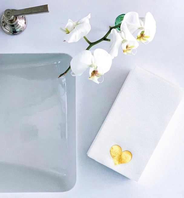Our heavy-weight, foil-embossed guest towels are several cuts above your average bathroom hand towel. Elevate your bathroom game with these cheeky and luxe towels for your bathroom