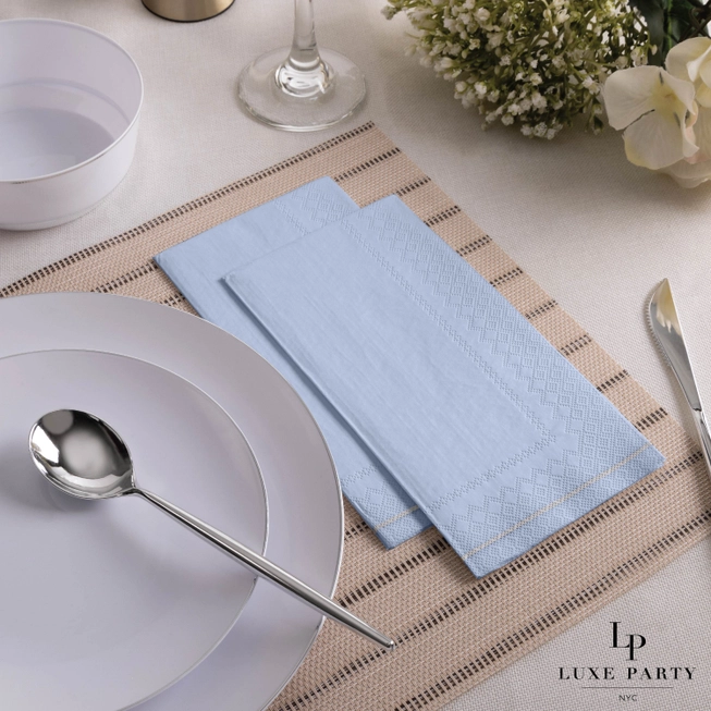 Ice Blue with Silver Guest Paper Napkins | 16 Dinner Napkins