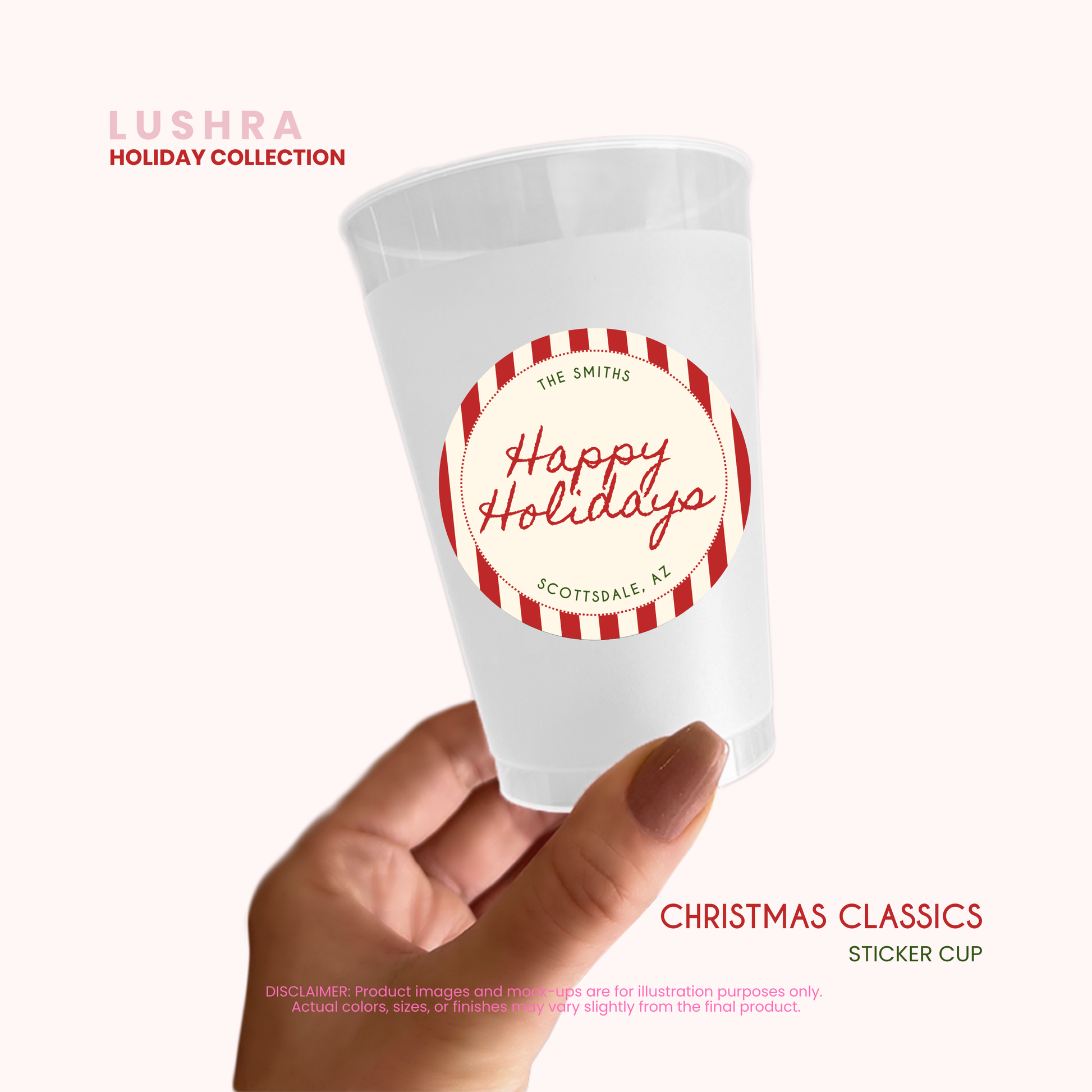 Add a perfect touch of festive cheer to your party drinks with our Limited Edition Holiday Sticker Cups.