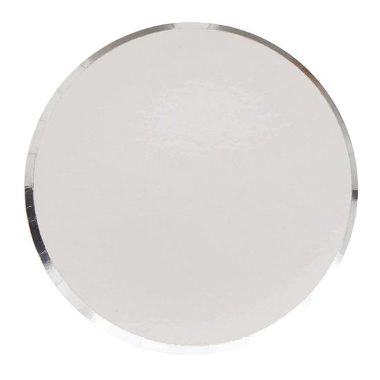 Set of 8 plates, Paper, 9" wide, Double sided color, Delicate low profile rim