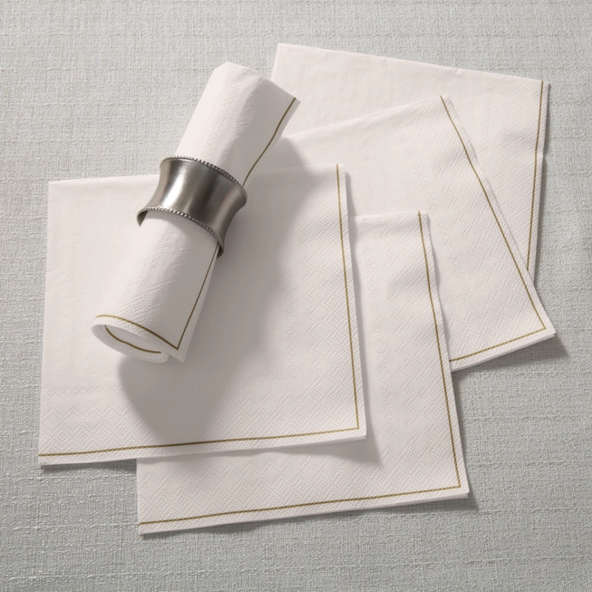 Linen with Gold Stripe Napkins | 20 Lunch Napkins - 6.5" x 6.5"