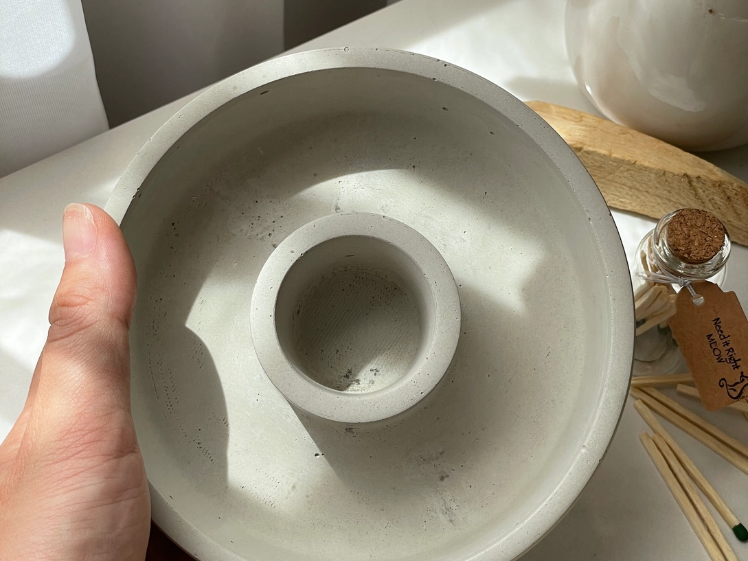 Cement hand-crafted Palo Santo Holder. Due to its handmade nature, imperfections are excepted and add to the uniqueness of each piece. Photographed is a "Cement" color