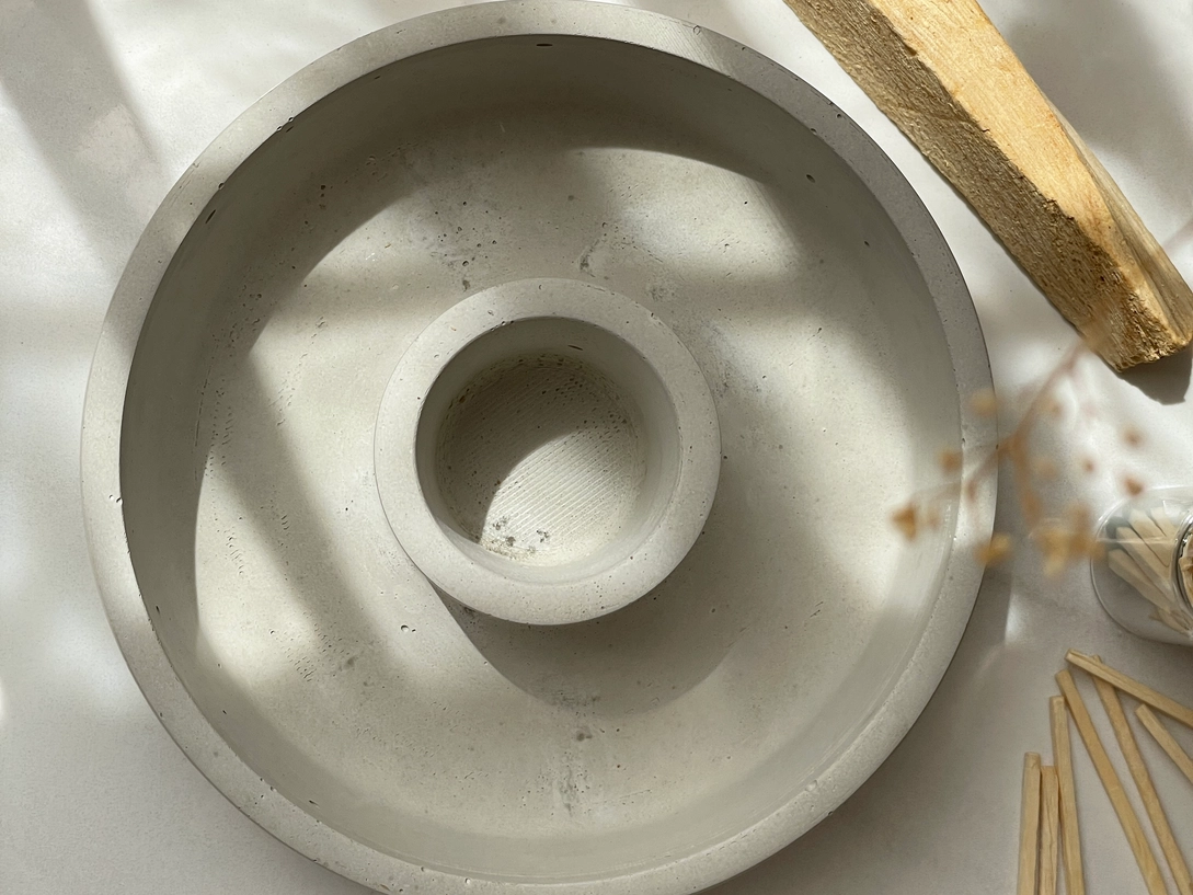 Cement hand-crafted Palo Santo Holder. Due to its handmade nature, imperfections are excepted and add to the uniqueness of each piece. Photographed is a "Cement" color