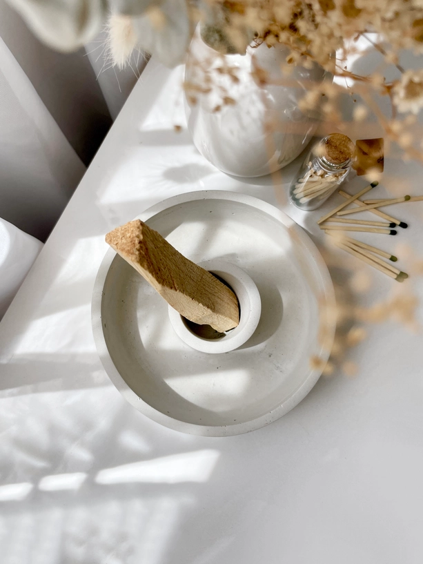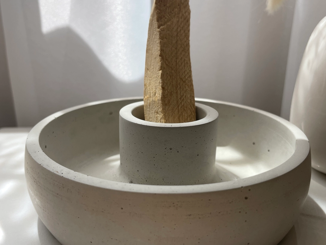 Cement hand-crafted Palo Santo Holder. Due to handmade nature, imperfections are excepted and add to the uniqueness of each piece. Photographed is a "Cement" color