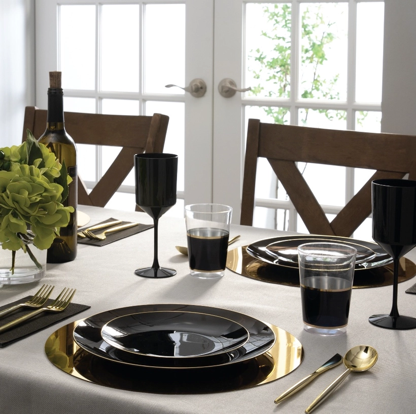 Round Black • Gold Plastic Appetizer Plates | 10 Pack