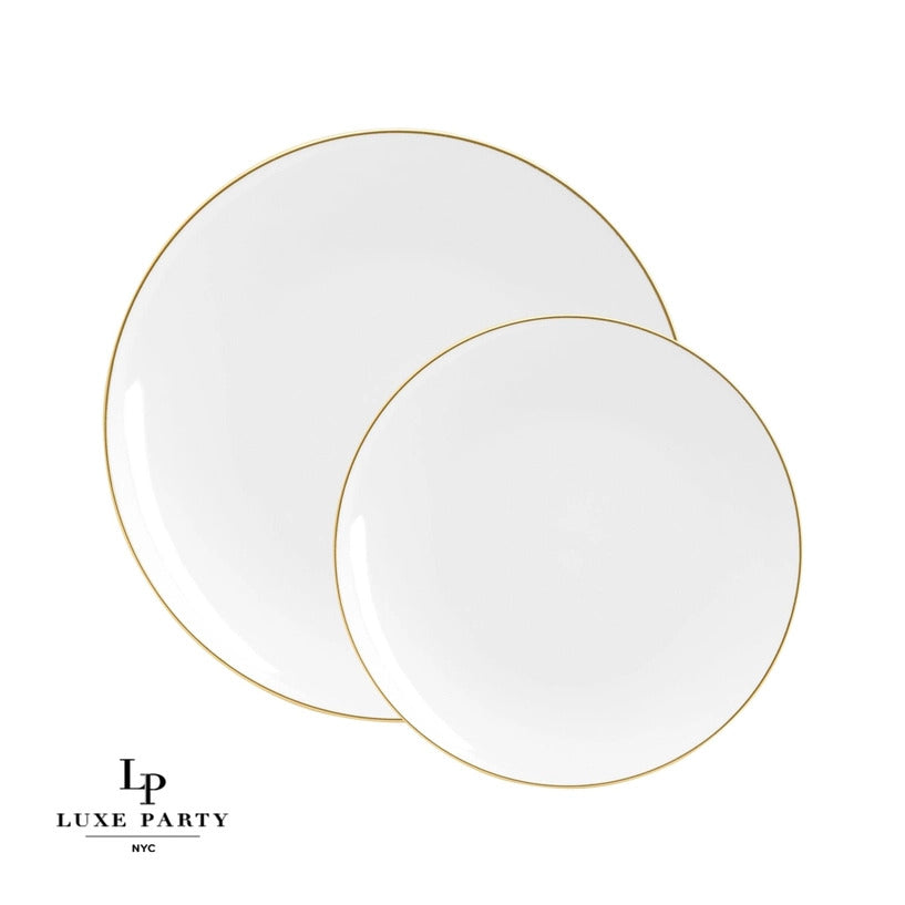 Round White • Gold Plastic Appetizer Plates | 10 Pack