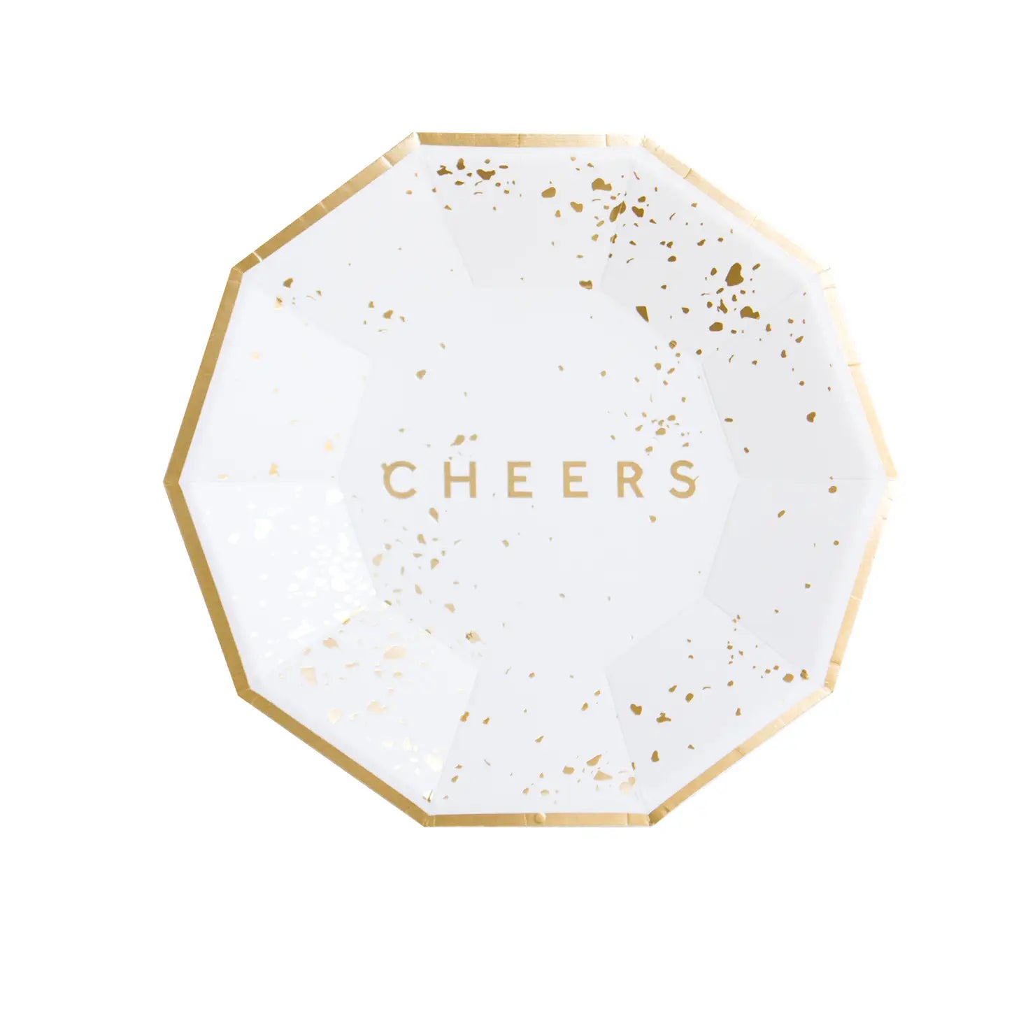 Beautifully understated with 'Cheers' in gold foil, our elegant small party plates elevate the everyday celebration. Pair with our gorgeous selection of cocktail napkins for all of your cocktail shindigs and holiday soirées.