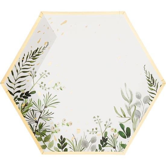 Relaxed and feminine with a subdued sage green hue and a soft sweet light peach, our plates are perfect for your next birthday party, bridal shower, or special celebration.