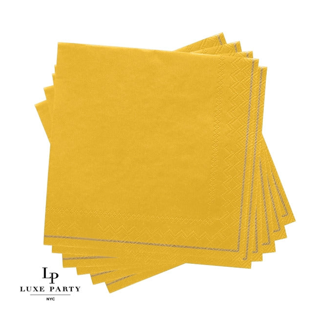 Yellow with Gold Stripe Lunch Napkins | 20 Napkins